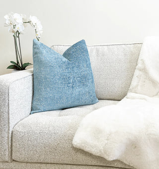 Delve into the calming essence of blue. Our pillows, created from high-quality fabrics, are handcrafted to bring a serene and stylish touch to your decor, providing both comfort and a tranquil aesthetic.
