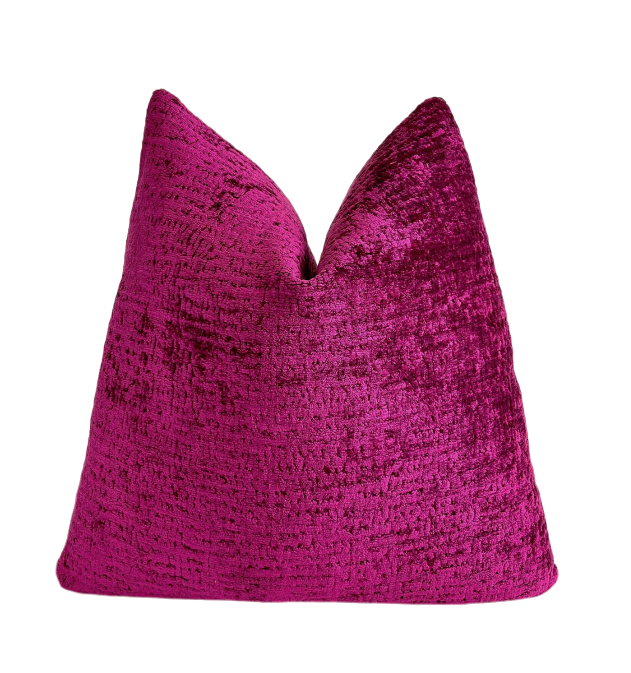 This plush magenta pink textured chenille throw pillow is the perfect addition to a luxurious interior. It's handmade with thick upholstery bright magenta chenille that's durable yet soft to the touch. This decorative pillow cover has an elegant sheen and texture that add to its luxurious feel. It's versatile and is at home in the most stylish living room, bedroom or office. It's perfect on its own or mix and match it with other throw pillow patterns for added interest.