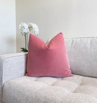 Experience the soft allure of pink. Our pillows are carefully handcrafted to add a touch of gentle elegance to your decor. Made from premium designer fabrics, they provide both plush comfort and a chic aesthetic.
