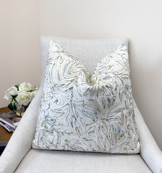 Thibaut Hamilton Embroidery Spa Blue White Throw Pillow