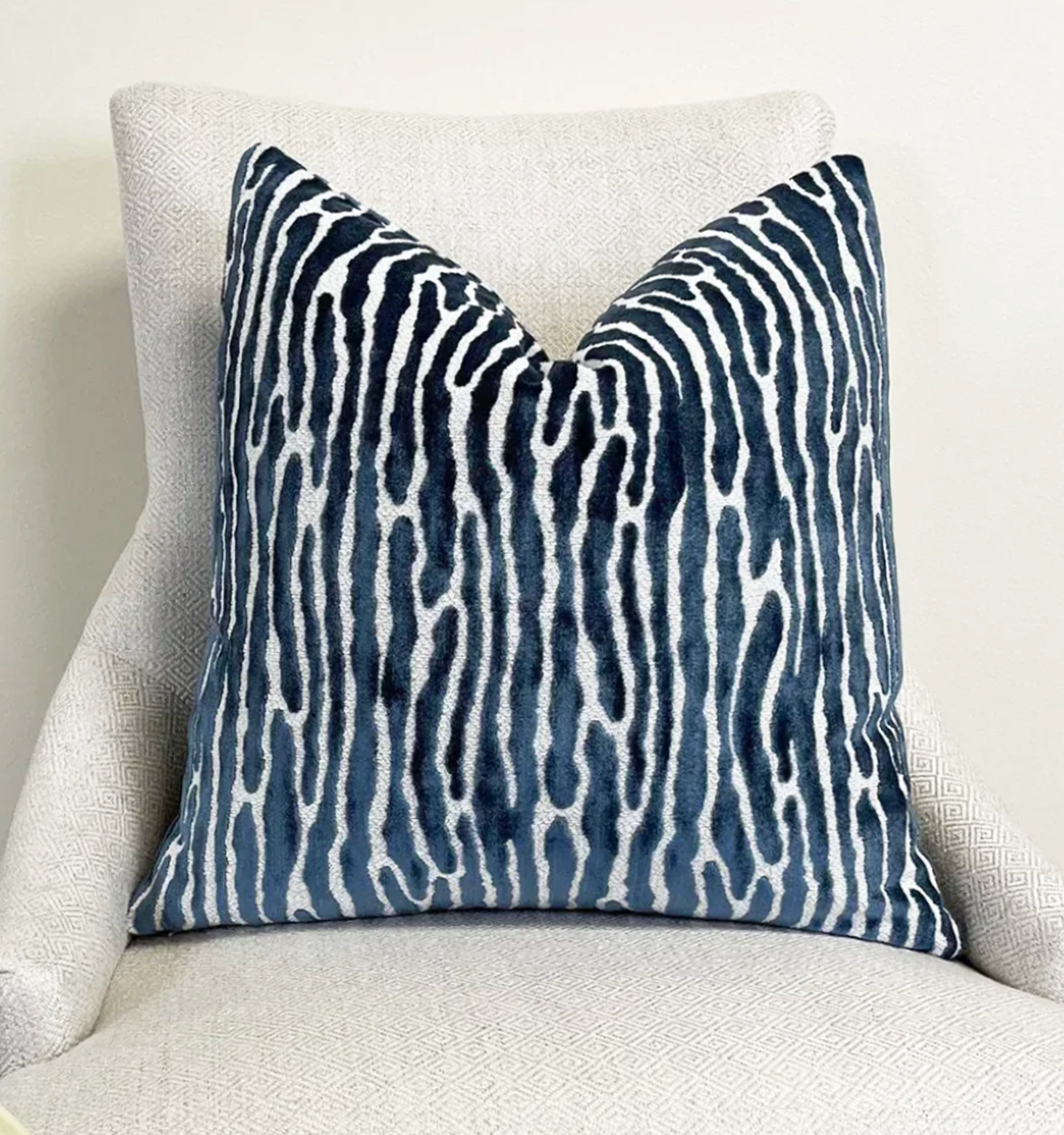 Proudly handmade in the US, these pillow covers reflect superior craftsmanship and attention to detail. Add a touch of luxury and elegance to your living space with our exquisite mariner blue cut velvet pillow cover.